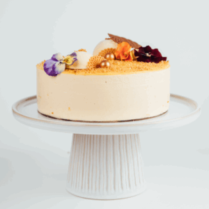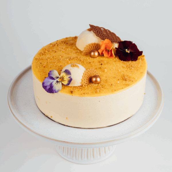 Please note that the golden kumara may naturally react with the baking soda in the cake, which can result in some green specks within the kumara layer. This is a harmless reaction and completely safe to eat.